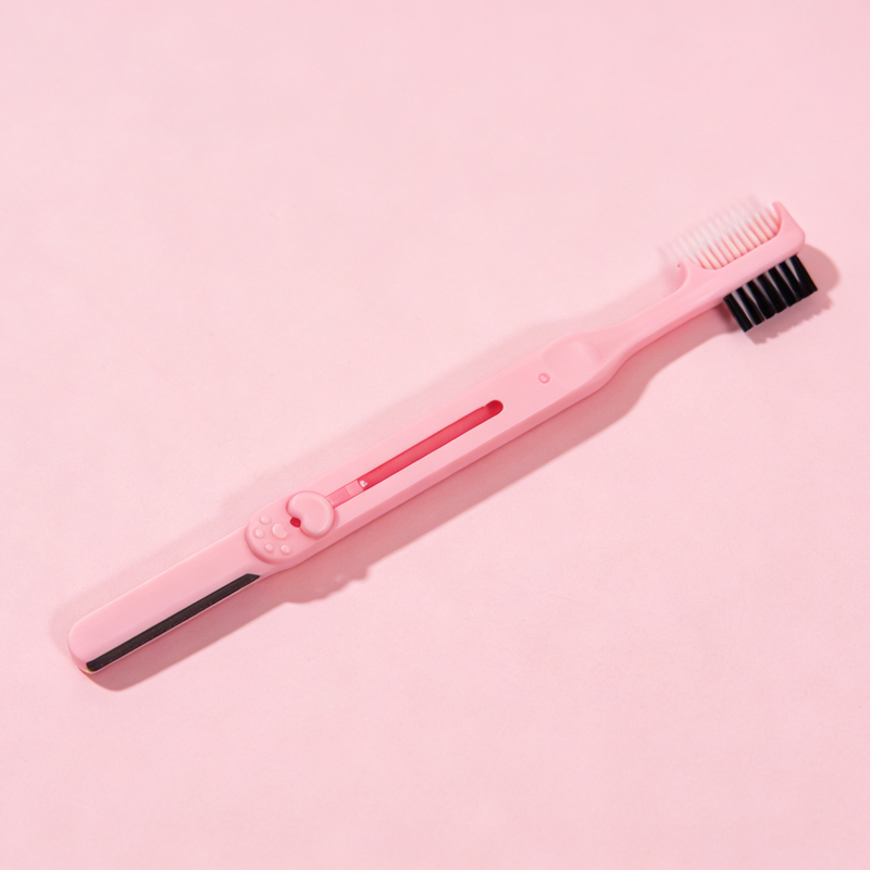 2-in-1 Dual Function Design: Combines a precision stainless steel eyebrow razor and a double-sided grooming brush (pink + black bristles) in one tool. Effortlessly trims unwanted brow hair, shapes eyebrows, and combs brows to a polished, defined look in a single step.
