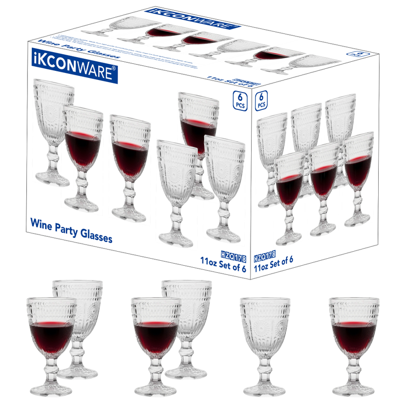 PRODUCT NAME | 6-Piece Sunflower-Embossed Wine Glass Set |