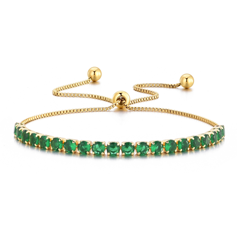 Timeless Tennis Bracelet Design: Lined with brilliant cushion-cut green CZ stones, mimicking the luxury of real emeralds for a high-end look.