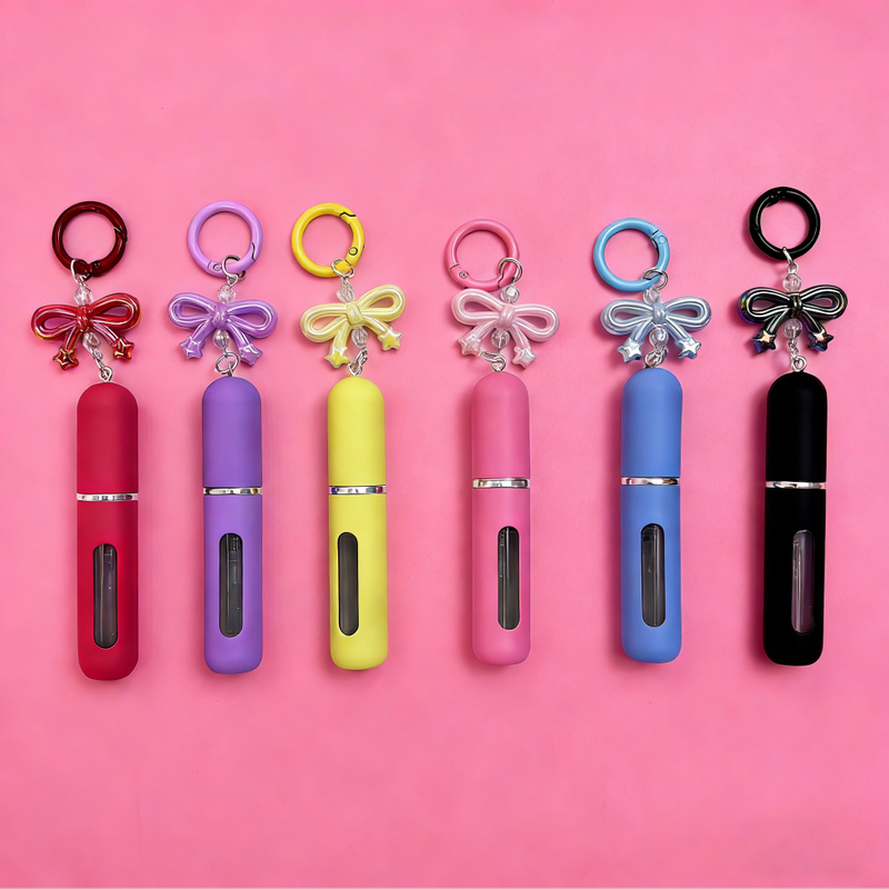 Stylish Bow Charm Accessory: Adorned with colorful bow and star charms, it doubles as a fashionable decorative accessory while serving as a functional perfume dispenser.