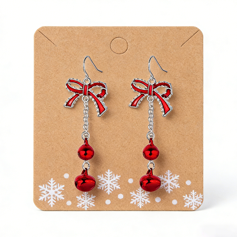Festive Red Bow & Bell Design: Features a vibrant red enamel bow charm with silver trim, paired with two cascading red jingle bells for a classic, eye-catching Christmas look.