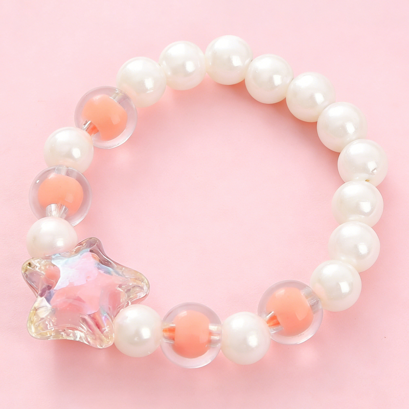 Adorable Star Design: Shiny pink star charm paired with creamy faux pearls, perfect for little girls' princess style.