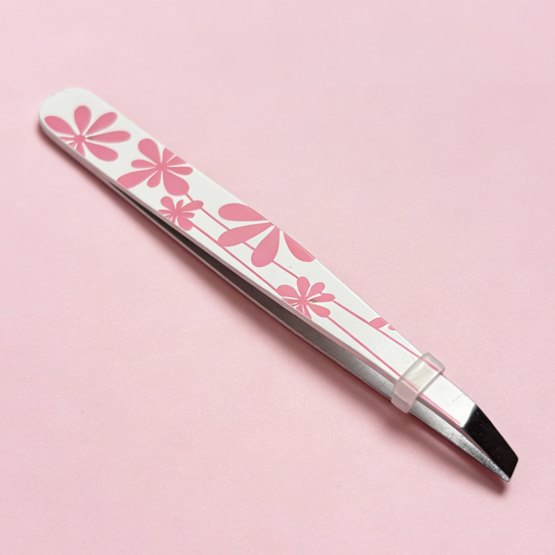 Charming Floral Pattern: Adorned with a delicate pink floral print on a white background, this tweezer combines practicality with a cute, feminine look that elevates your beauty routine.