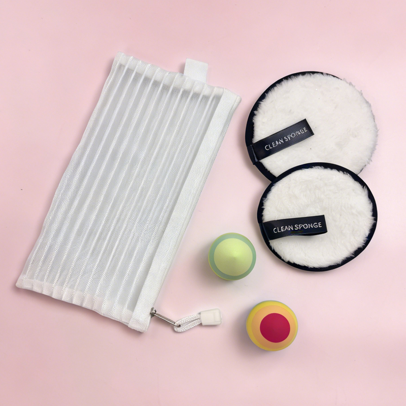 The included white mesh storage bag keeps sponges organized, protected, and breathable, preventing bacteria buildup and making it ideal for travel or on-the-go use.